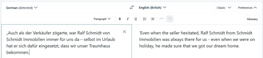 Die Qualität maschineller Übersetzungen von Anbietern wie DeepL, ChatGPT und Google Translate/Bard hat sich in den letzten Jahren enorm verbessert. Sie sind außerdem schneller und günstiger als ein Humanübersetzer. Viele Unternehmen, Organisationen und akademische Institutionen nutzen diese Angebote für die Übersetzung ihrer deutschen Texte ins Englische. Vor der Veröffentlichung wird das Ergebnis üblicherweise noch an einen englischen Korrekturleser gegeben, um sicherzustellen, dass „keine Fehler“ enthalten sind.