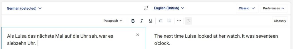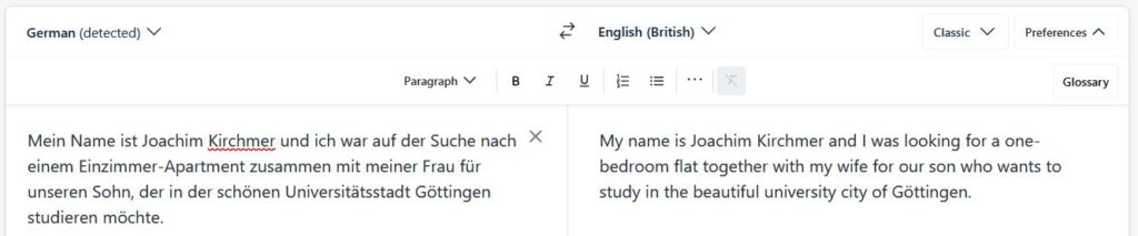 Wie ich gezeigt habe, können maschinell übersetzte Texte Fehler enthalten, die das Verständnis mindern oder irreführend sind. Deshalb sollten solche Texte, wenn sie für eine breitere Leserschaft intendiert sind, immer ein grundlegendes „Post-Editing“ erfahren. Dieser Prozess umfasst alles, was zu einem Lektorat gehört (Prüfung von Rechtschreibung, Grammatik, Zeichensetzung und stilistische Verbesserungen, wo notwendig). Gleichzeitig wird aber die englische Übersetzung mit dem deutschen Ausgangstext abgeglichen. Wo die Übersetzung falsch ist oder lesbarer und verständlicher formuliert werden muss, übersetze ich den Satz für Sie neu. So können Sie sicher sein, dass sich der Text nicht nur gut liest, sondern auch den deutschen Inhalt korrekt wiedergibt.